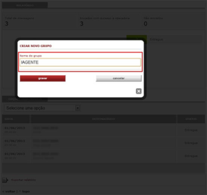 Ao selecionar esta opção abrirá uma nova tela com a opção de digitar o nome do novo grupo (vide imagem). Digitamos IAGENTE e clicamos em gravar.