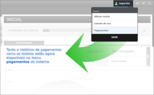 Seu boleto de cobrança já está disponível na sua conta no IAGENTEmail. Abaixo, ilustramos como você pode acessá-lo em sua conta. O primeiro passo é clicar no menu superior no link pagamentos.