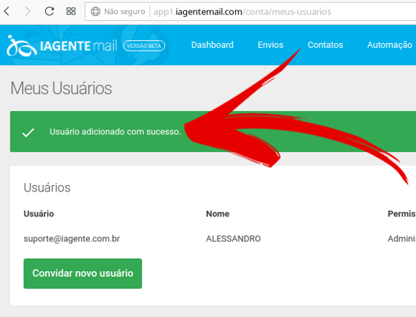 ... a opção de criar um novo usuário permite que este acesse uma conta específica com um e-mail específico.